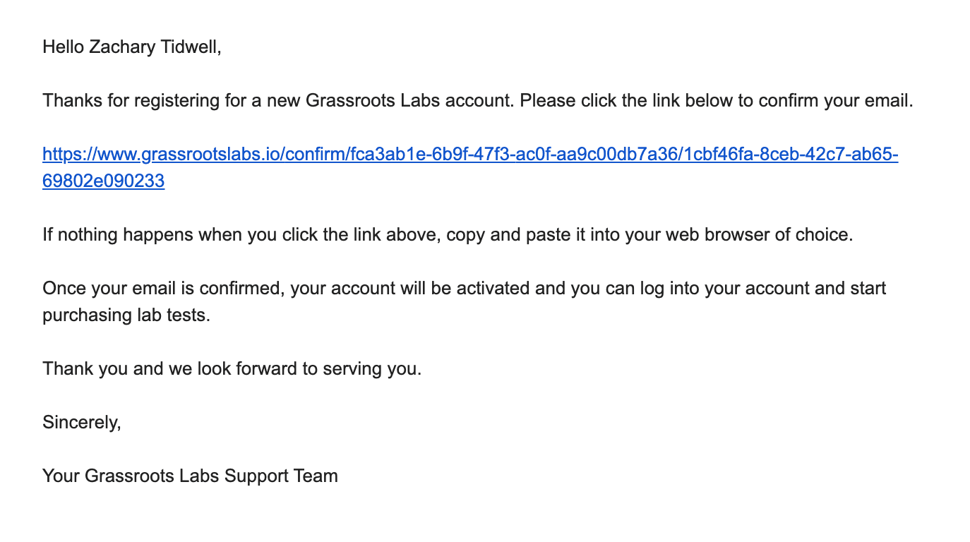 Results are available within 3-5 business days. Get notified by email. Download and share your results from your Grassroots Labs Account online.